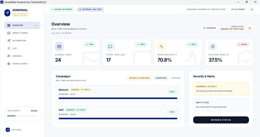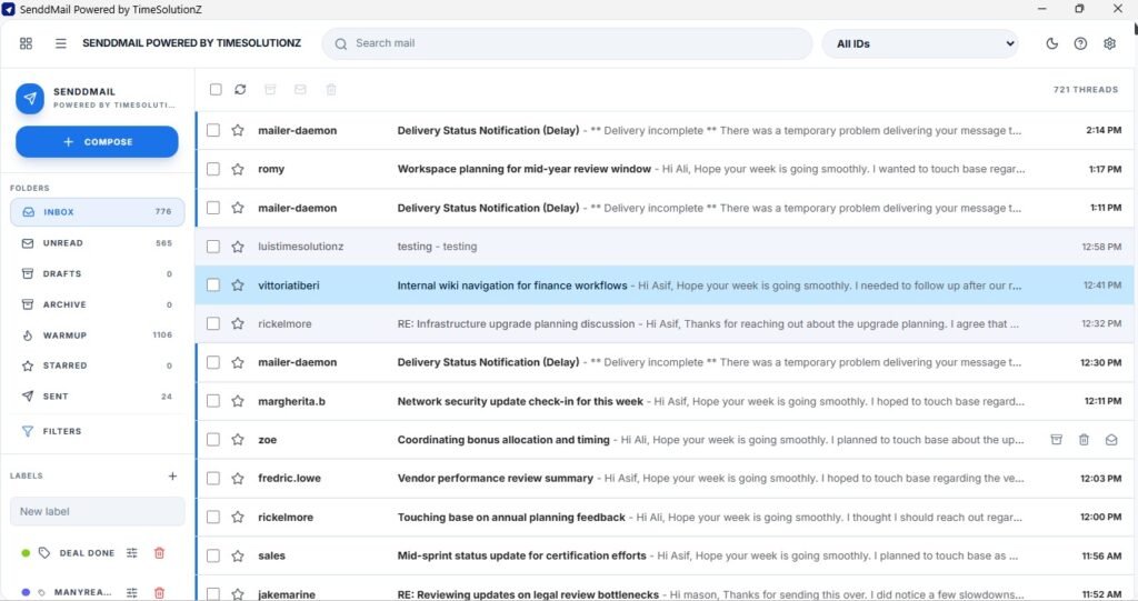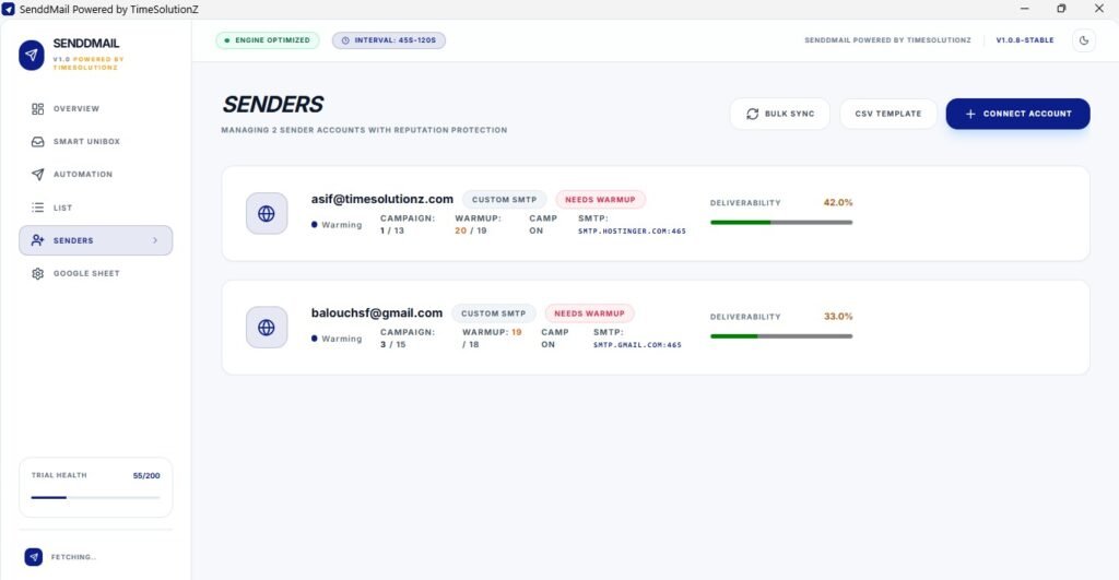 Send Unlimited Emails One App, Unlimited Senders SendDMail is a complete email sending solution with real warmup, SMTP/IMAP support, smart